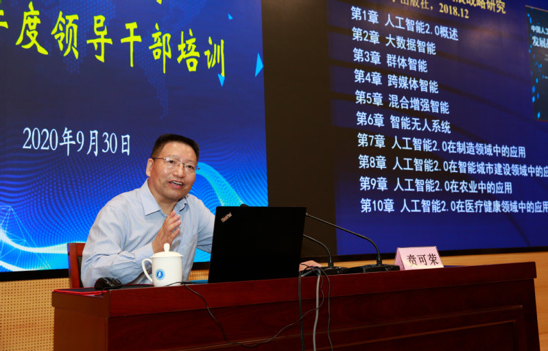 9月30日上午,海军工程大学博士生导师、人工智能装备应用专业组副组长贲可荣教授,应邀为我校2020年干部培训班作了“海洋装备智能化与智能化装备进展”的专题报告。报告会由周南平校长主持。校领导、中层干部、计算机等相关学院教师及部分研究生聆听了报告。