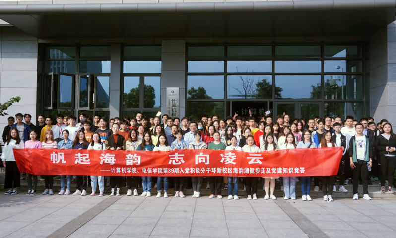 10月17日下午,计算机、电信学院第39期党校入党积极分子齐聚计算机学院楼下,共同开展环新校区海韵湖健步行及党建知识竞答活动。出席此次活动的有计算机学院党委书记韩斌、计算机学院关工委副主任刘镇、计算机学院党委副书记吴健康、计算机学院团委张苏婷以及组织员李秀明。