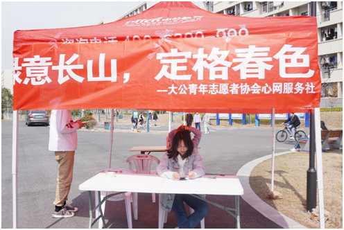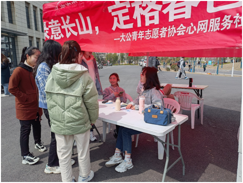 为了提高活动参与度,增强宣传效果,3月12日上午,青协成员们在西苑食堂门前支起摊位,向过路同学们积极宣传此次“绿意长山”活动。