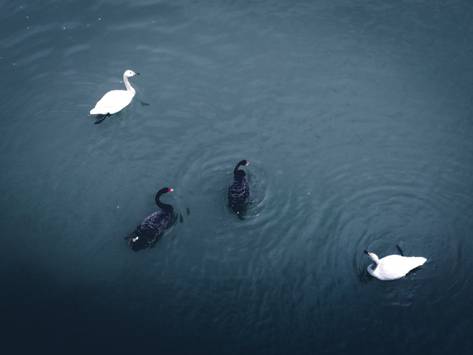 (图为文理大楼旁湖里的两对天鹅 安金月同学投稿)