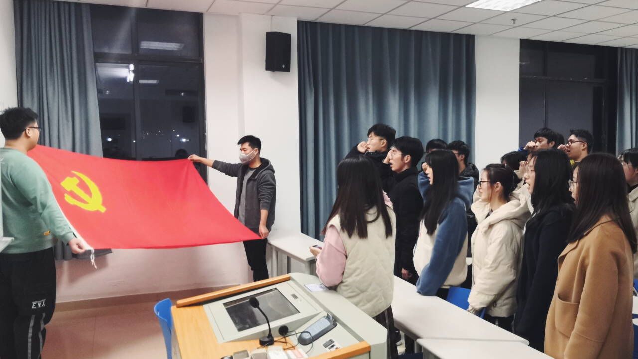 观看节目的最后,全体党员与屏幕中的党员一起重温了入党誓词。