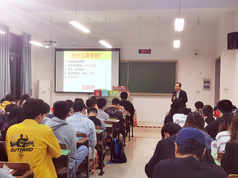 分年级为考研学子提供指导。随着考研决策的不断提前,不少学生在二三年级便进入考研备考状态,学院根据学生需求,对不同年级的学生给与指导。大一新生入学时,学院积极引导学生树立明确的学习目标,学好基础课程,在学生心中播下考研的种子;大二大三年级,对学生进行分流管理,对有考研意向的同学进行精准指导,分批次、分专业举办考研经验分享交流会、指导讲座等,帮助学生坚定考研信念,制定合理目标。