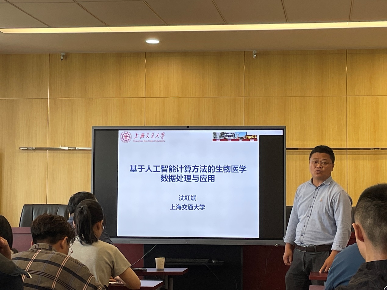 在聘任仪式完成后,由计算机学院副院长杨习贝主持,沈红斌教授与於东军教授在计算机学院报告厅分别作了题为“基于人工智能计算方法的生物医学数据处理与应用”和“人工智能在蛋白质结构与功能预测中的应用”的学术报告,计算机学院相关领导、青年骨干教师和研究生聆听了报告。