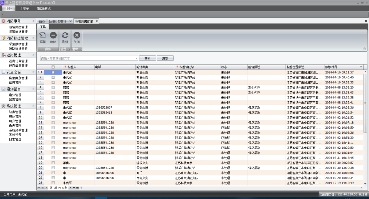 研究所承担的江苏蓝图消防装备有限公司委托开发项目:消防报警智能综合系统,该系统适用于各类城市微型消防站,使用互联网技术,简化火情等紧急情况报警流程,提高接警和响应效率;运用移动终端定位、在线巡查等形式,提升对消防人员的管理水平;运用数据可视化技术,在线实时对辖区内微型消防站的数据进行记录和监测;采用在线学习的方式,使兼职消防人员能利用碎片化的时间进行消防安全知识的学习。