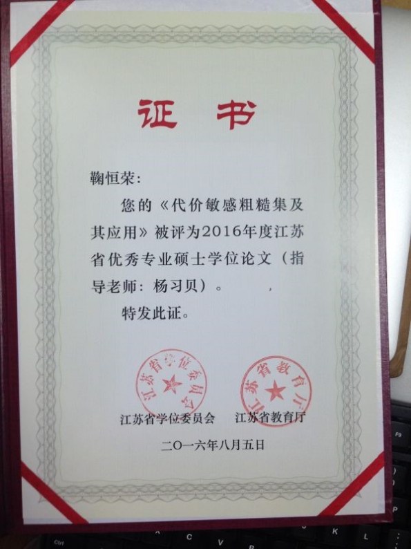 人才培养方面,截至目前,本所已经培养出了6名校优秀硕士学位论文获得者、2名江苏省优秀硕士学位论文获得者。