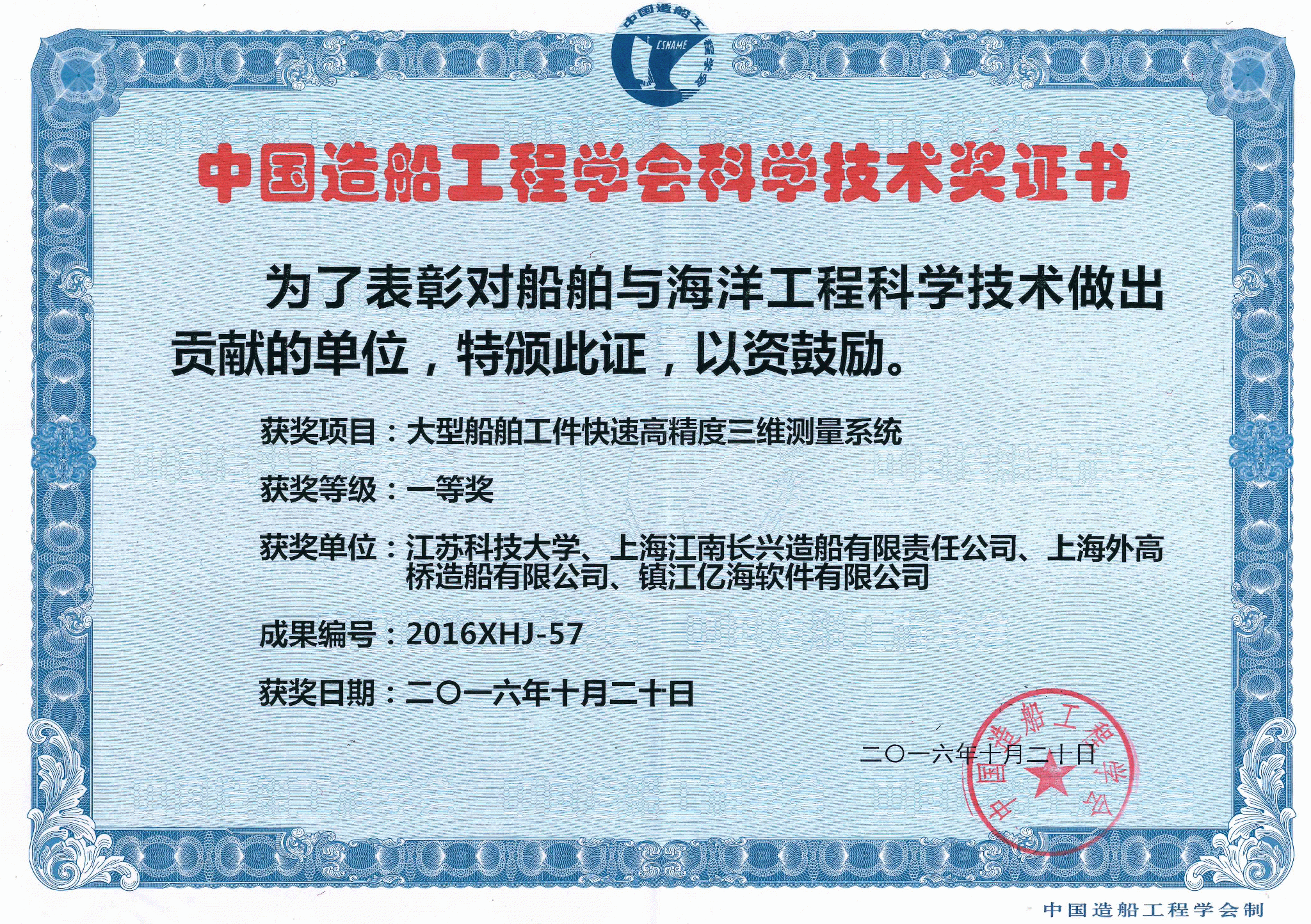 项目获中国造船工程学会科技进步一等奖、上海市科技进步二等奖。