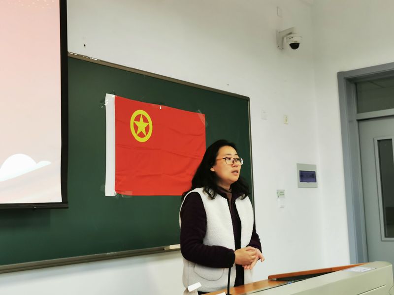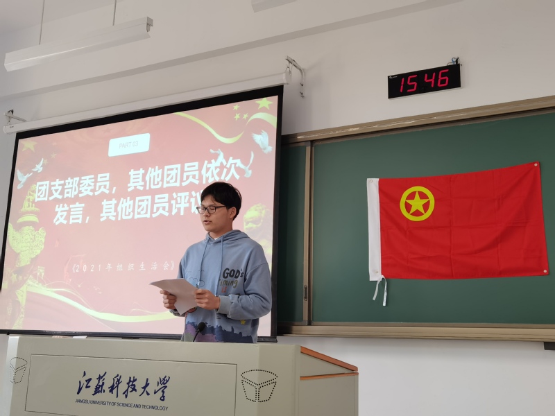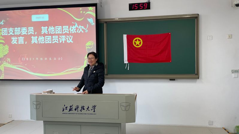 组织生活会按照六个环节进行,分别是全体唱团歌、团支部书记汇报团支部今年开展党史学习的情况、团支部委员、其他团员依次发言,其他团员评议、开展团员先进性评价民主测评投票、上级团组织负责人或本级党组织负责人点评讲话、重温入团誓词。张老师和崔老师分别点评了本次组织生活会的规范流程与效果意义,明确了下一步“学党史、强信念、跟党走”活动的规划。在庄重的活动氛围地鼓舞下,支部同学重温入团誓词,更加坚定自己未来的奋斗目标。