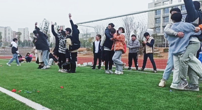 最后,同学们一起合影留念,打扫好现场卫生后离场,活动到此拉下帷幕。本活动不仅丰富了学生的课余活动,增强了同学们的集体意识和团结意识,也训练大家的反应能力。这次活动始于寒风,止于热烈,运动后的余温将伴着同学们一起历经枯燥的复习、紧张的考试。生命在于运动,此间逸趣横生!