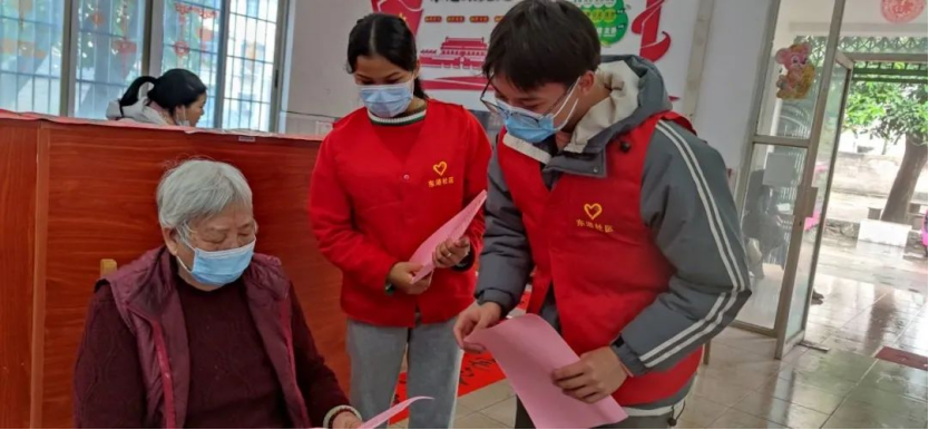 在活动的前半部分,我们共同参与了贵港市老年大学联合各社区举行的“迎新春,写春联,送祝福”志愿服务活动。在活动中,不仅仅是写春联迎新春感受中国传统文化,更是通过陪伴乡村空巢老人让我们明白了团聚的真谛。