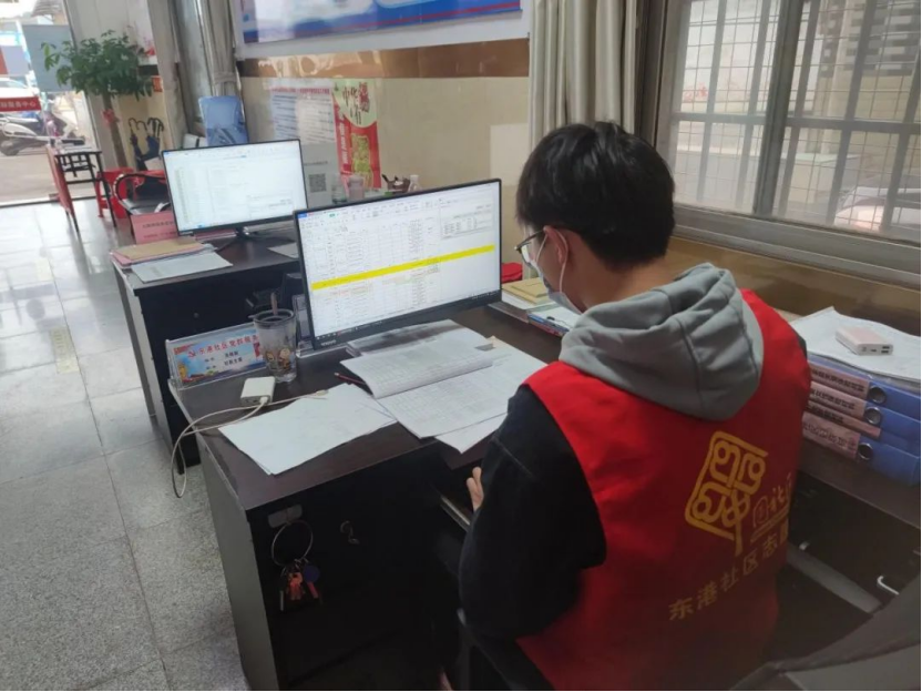 在春节前夕和春节期间蒋航同学更是直接参与到了社区的疫情防控工作中去,负责了东港社区的人员信息的输入及整理工作,为家乡社区贡献了自己的一份力。
