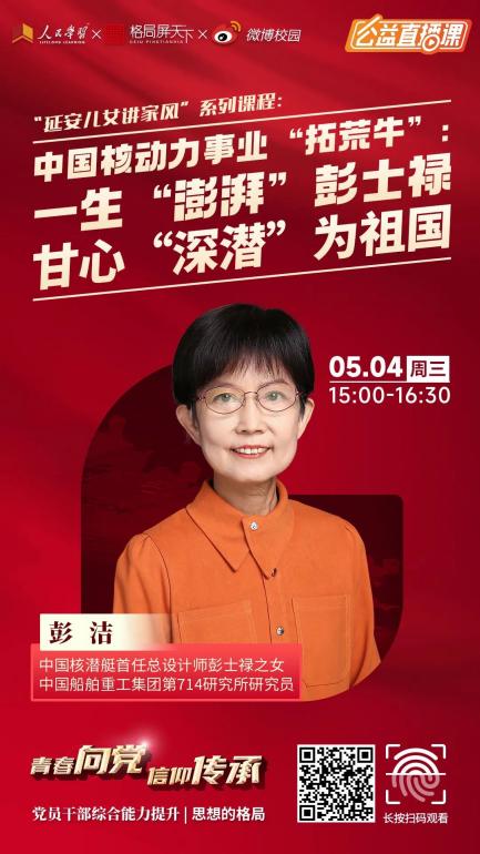 彭洁同志讲述了彭家上下为国家奋斗的艰苦历程,爷爷彭湃一生坚定为革命献身,爸爸彭士禄少时颠沛流离,却传承着父辈的信仰和斗志,时刻牢记共产党员的重任,一生潜心研究,为祖国核动力事业“拓荒牛”。