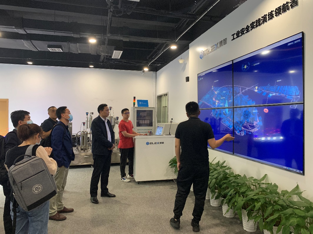 座谈会结束后,总裁助理兼总裁业务部总经理杨焱等人陪同韩斌教授一行参观了公司工控实践演练基地。
