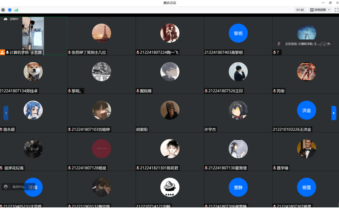 首先21级陈新同学代表团支书,讲述了刚刚到长山校区在计算机学院学习的感受,渴望科研机会与团队合作。然后由计算机学院张明老师从以往指导比赛的经验,创新竞赛的收益方面动员21级同学科创竞赛。经过项目选题、项目需求分析、项目答辩等多个环节的训练,虽然会经受很多的困难,但更多的是成长与进步。然后从选题项目实施和答辩三方面进行了指导分析。