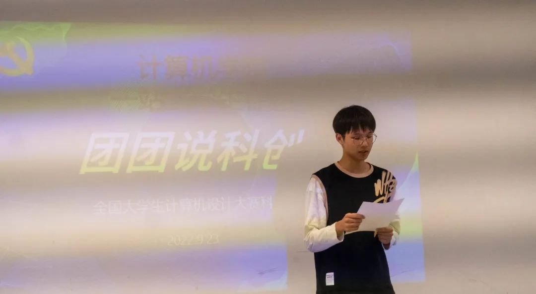 为深入学习习近平新时代中国特色社会主义思想和党的十九届六中全会精神,提升大学生科创意识,展示我院科技创新成果,加强科技创新内部驱动力;同时积极落实学校学生处“一站式学生社区”工作理念,9月23日,计算机学院张明老师在计算机学院男生宿舍楼49栋自习室开展了“团团说科创”——大学生创新创业、学科竞赛动员活动,本次活动还邀请了计算机设计大赛国家一等奖团队代表谷文一进行科创经验分享。21级计算机科学与技术专业30名同学代表在现场,21级全体同学在线上收看。