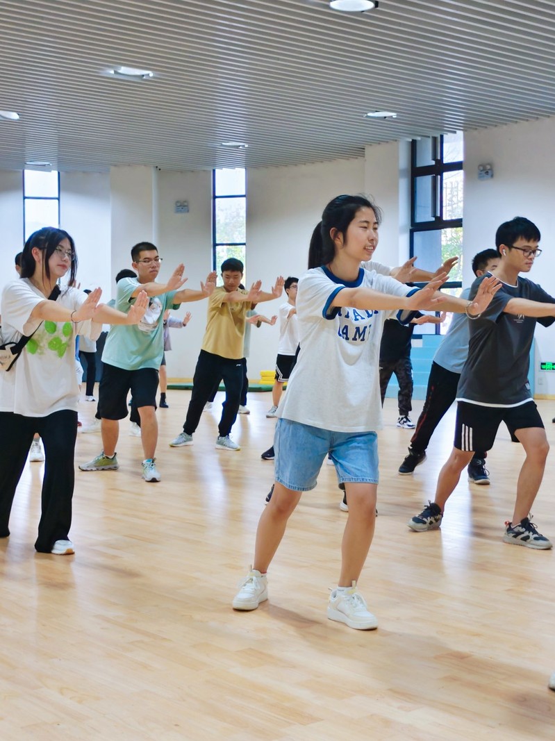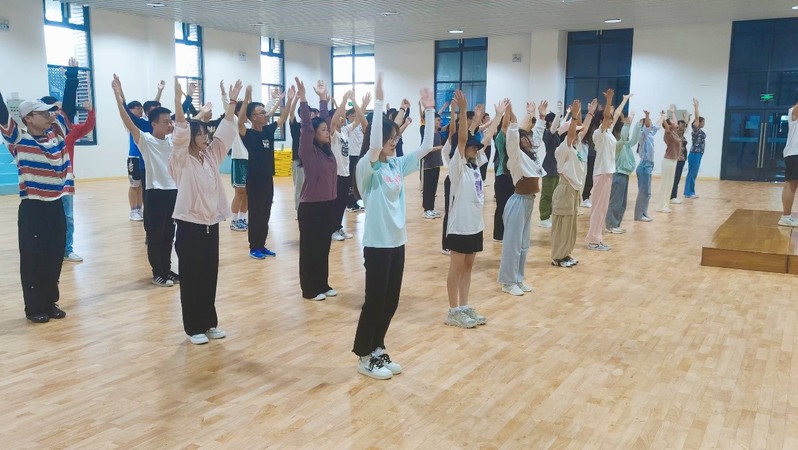 在长山校区文体中心健美操房进行了广播体操的选拔,来自学院里各个专业的选手们都积极参加。同学们随着音乐,紧跟节奏,努力把每一个动作都做到位。
