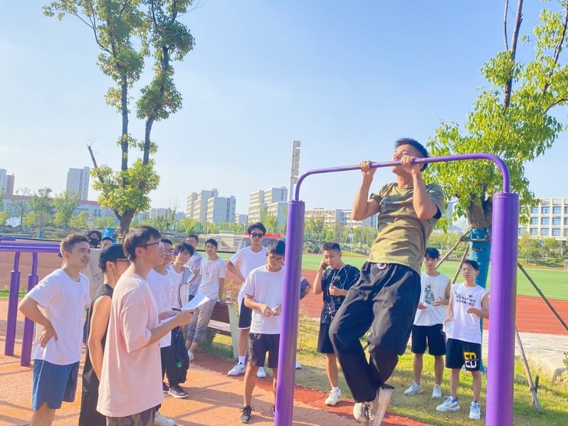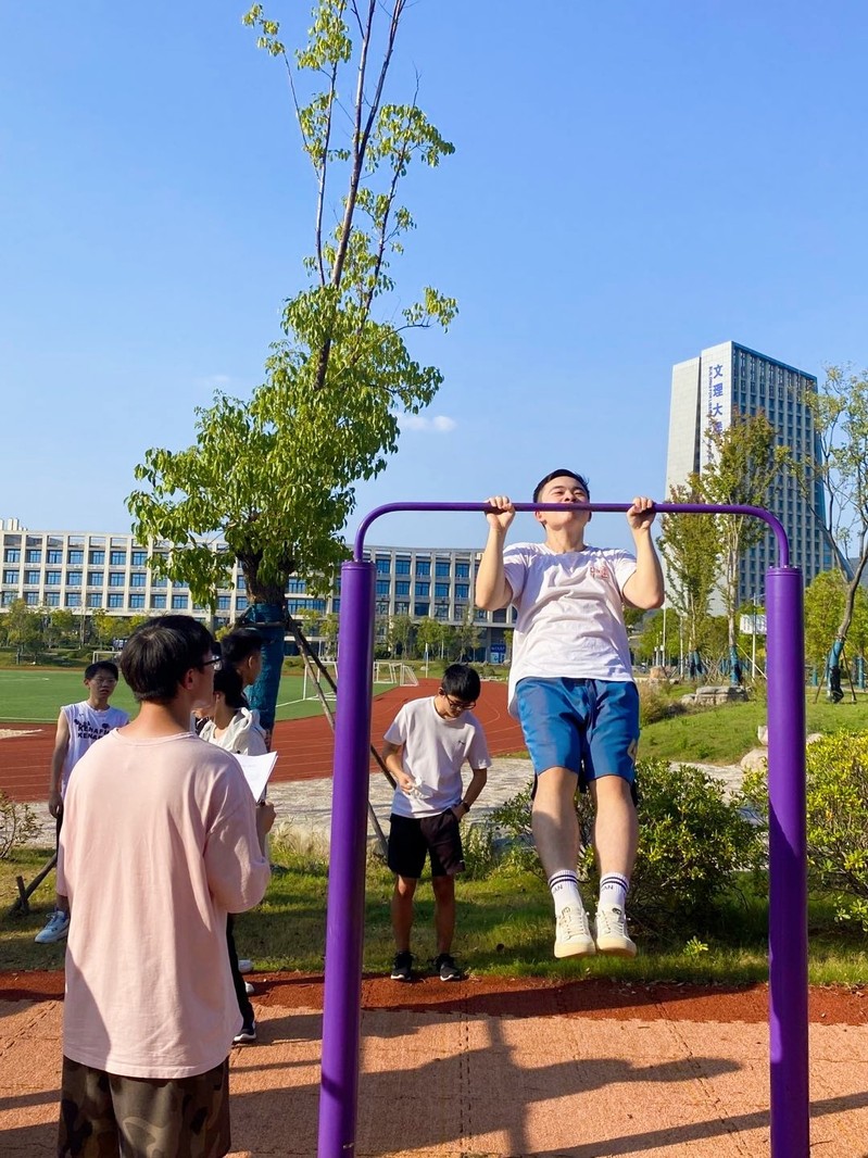 同学们围绕单杠站成一圈,为单杠上的同学鼓励加油,无关乎晋级或淘汰,都是操场小小一隅绽放的光芒。