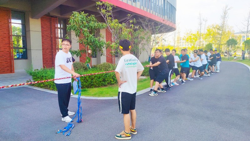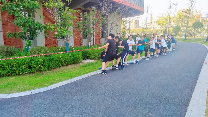 哨声一响,拔河队员们双手紧握长绳,憋足了劲拼命往后拉,为了队伍的胜利,每人都发挥了自己最大的能力,展现出了良好的团队意识和集体荣誉感。