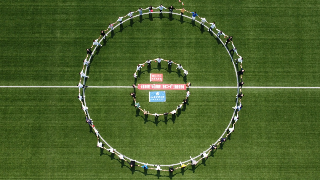 升国旗仪式结束后,同学们已经打破初识的陌生感,积极在西操场开展“同心庆国庆,喜迎党的二十大”主题素拓活动。