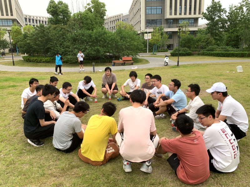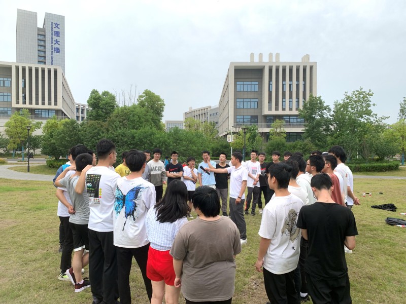 本次生命教育、同伴教育体验式素质拓展分为三个环节,主题班会、热身游戏、团队记忆。在室内主题班会中,刘宝达老师首先以“生命”作为中心词,让同学们展开想象,活跃大家的气氛,随即以生命的意义切入主题,与同学们一同探讨其意义所在,提醒同学们要把握当下,珍惜生命。其中提到“生命中印象最深刻的人”,同学们对此侃侃而谈,有老师、学生、父母等。此外,结合相关案例让同学们体会到生命的脆弱,并在面对生活、学习等压力时给出合理建议。
