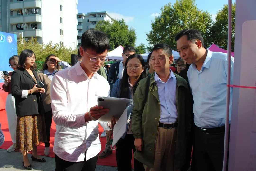 开幕式结束之后,在学生会成员的引导下,老师们逐一参观展出作品。认真倾听项目讲解员讲解,仔细询问每个项目所遇难题、所获荣誉,并对各个项目的未来发展提出不同的意见加以改进及展望。