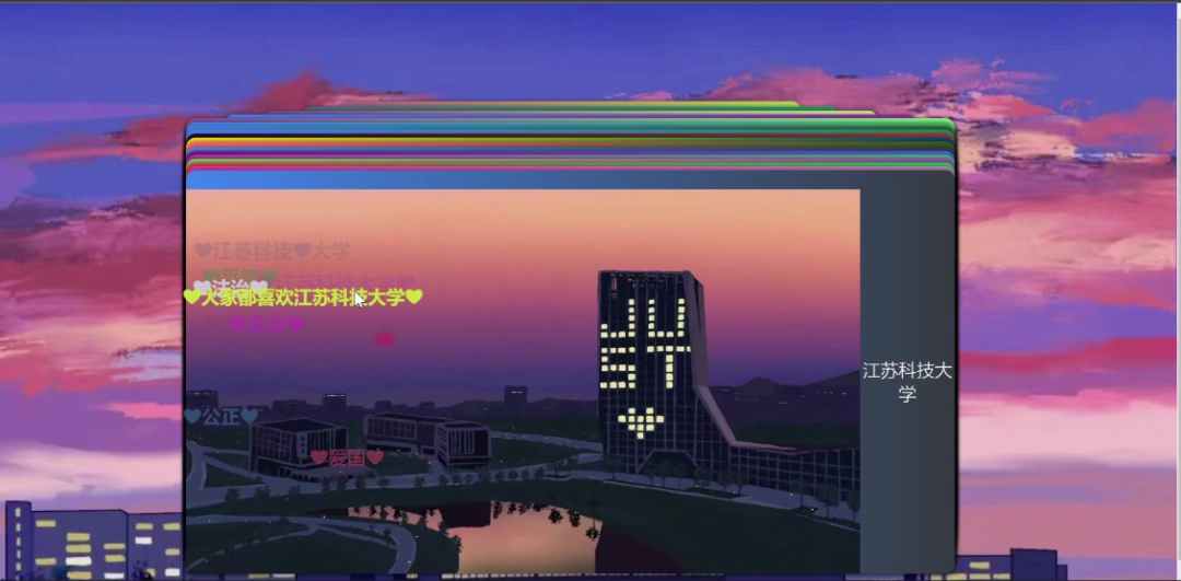 萤火虫义工站已连续两年举办“校庆日编程表白江科大”活动,旨在以编程的形式祝福江科大周年庆,以及宣传“新时代,人人都是创造者;新时代,人人都是编程者”的时代精神,营造浓厚的感恩、创新氛围,增强老师、同学们的幸福感,促进我校人文情怀建设,引导学生成为新时代下德艺双馨的弄潮儿。