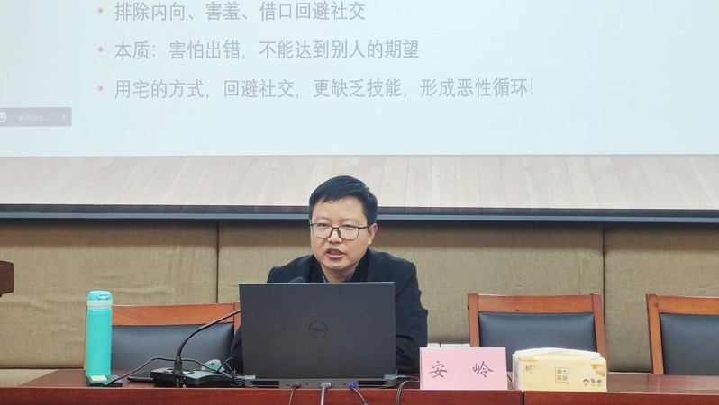 安岭老师通过分享两段线上视频,为同学们介绍到当今我国年轻人的社交恐惧症的现状、社交恐惧症为什么在大学生中成为一个高频词。当今的大学生在排除内向、害羞的前提下用社交恐惧来做借口回避社交,本质上是因为害怕出错,不能达到别人的期望值,从而用宅的方式回避社交,使得本身的人际关系达不到期望值,自身的技能也缺乏锻炼,长此以往,容易形成恶性循环。
