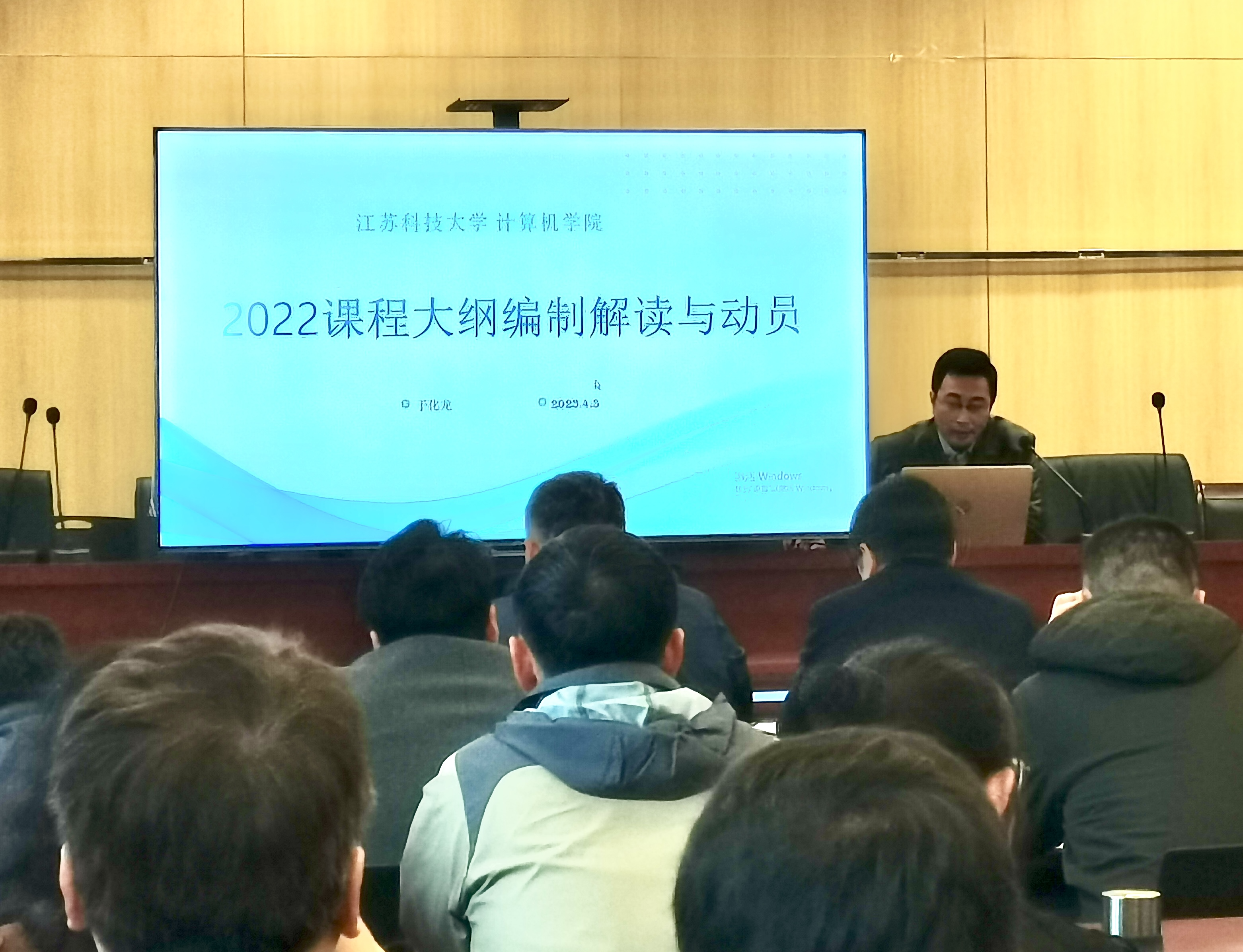 4月3日,计算机学院在学院320会议室召集全院教师召开2022版课程教学大纲编制工作动员会。会议邀请学校教务处田桂中副处长和仲媛老师,及学院党委书记高尚和院长杨习贝参会。会议由副院长于化龙主持。