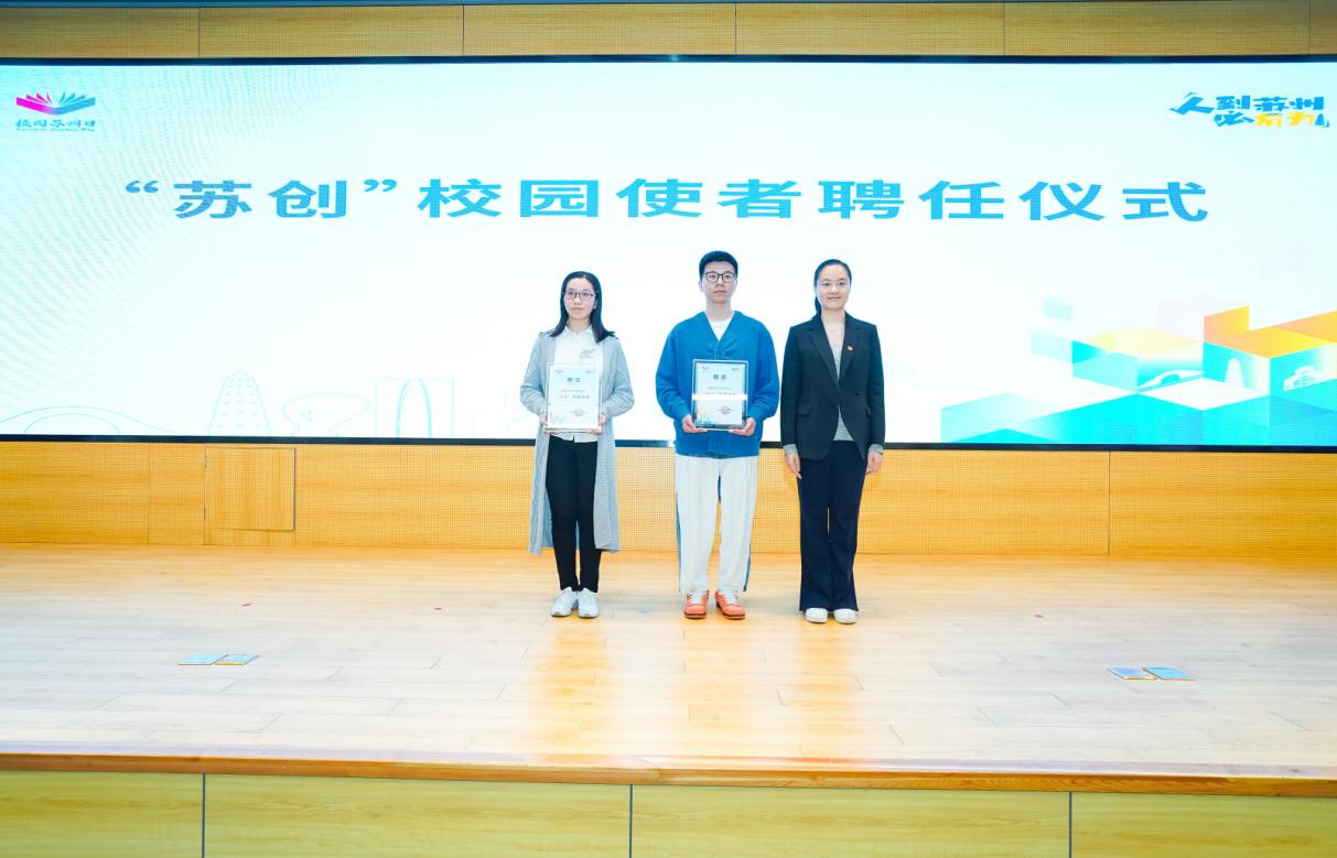共青团姑苏区委副书记饶珠为2位“苏创”校园使者颁发聘书