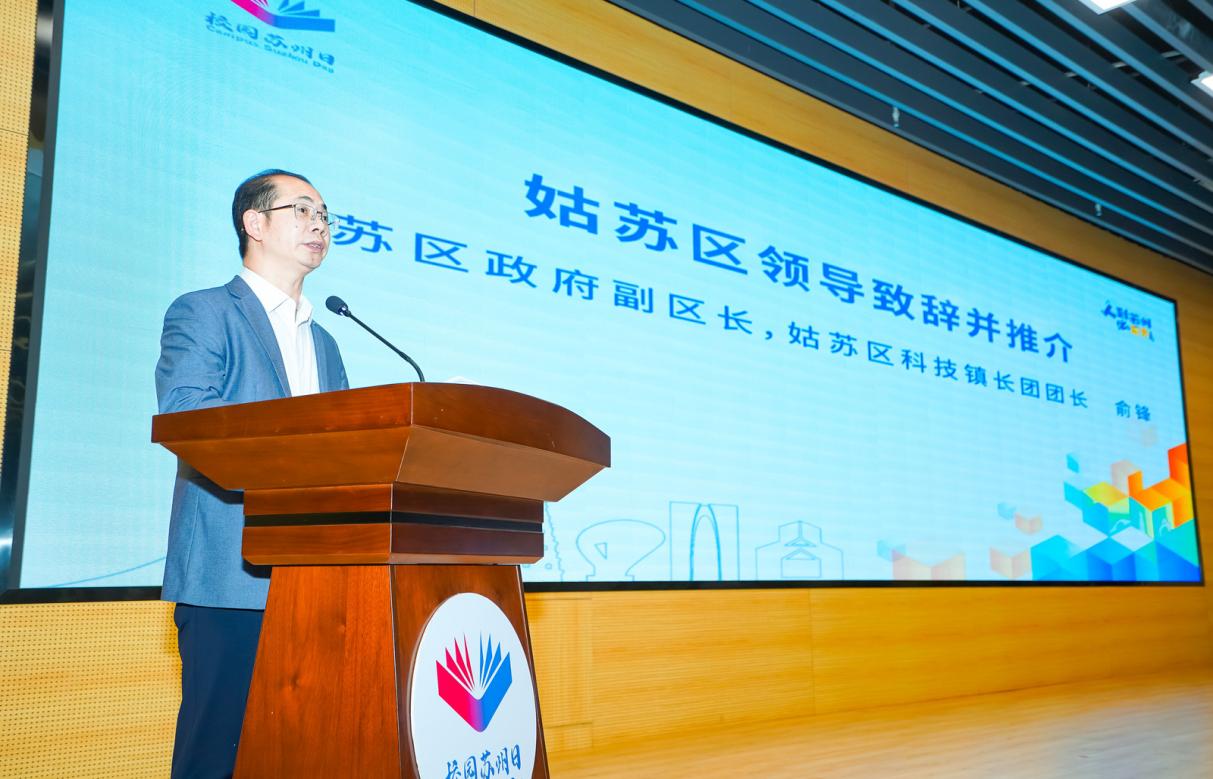 姑苏区政府副区长、科技镇长团团长俞锋致辞,并对姑苏区创新创业环境作推介,他诚挚邀请江科大学子们将踏入社会的首站选择苏州,选择姑苏,与姑苏的古城振兴携手奋斗,共同圆梦!