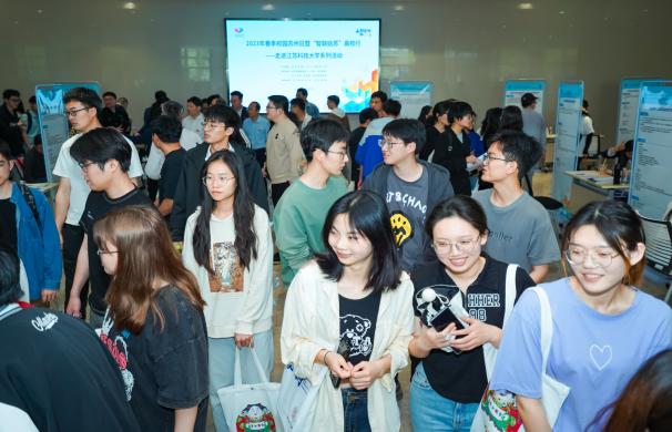在招聘环节,同学们来到图书馆B105外大厅,参加“智联姑苏”高校行毕业生专场春季招聘会。专场招聘会上,姑苏区携44家优质企业,587余个专业高度对口的岗位需求,企业所属行业涉及计算机、机械、生技、材料、能源动力、金融、土木建筑等多个专业。招聘会吸引了大批2023届毕业生和2024届预毕业学生的到来现场人头攒动,学子们接踵前来咨询,积极自荐,展位前排起长龙,招聘成果丰硕。