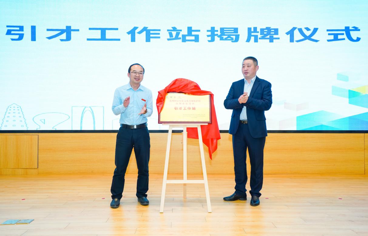 江苏科技大学学工处处长朱金,姑苏区人社局副局长邓仕海共同为“保护区、姑苏区引才工作站”揭牌