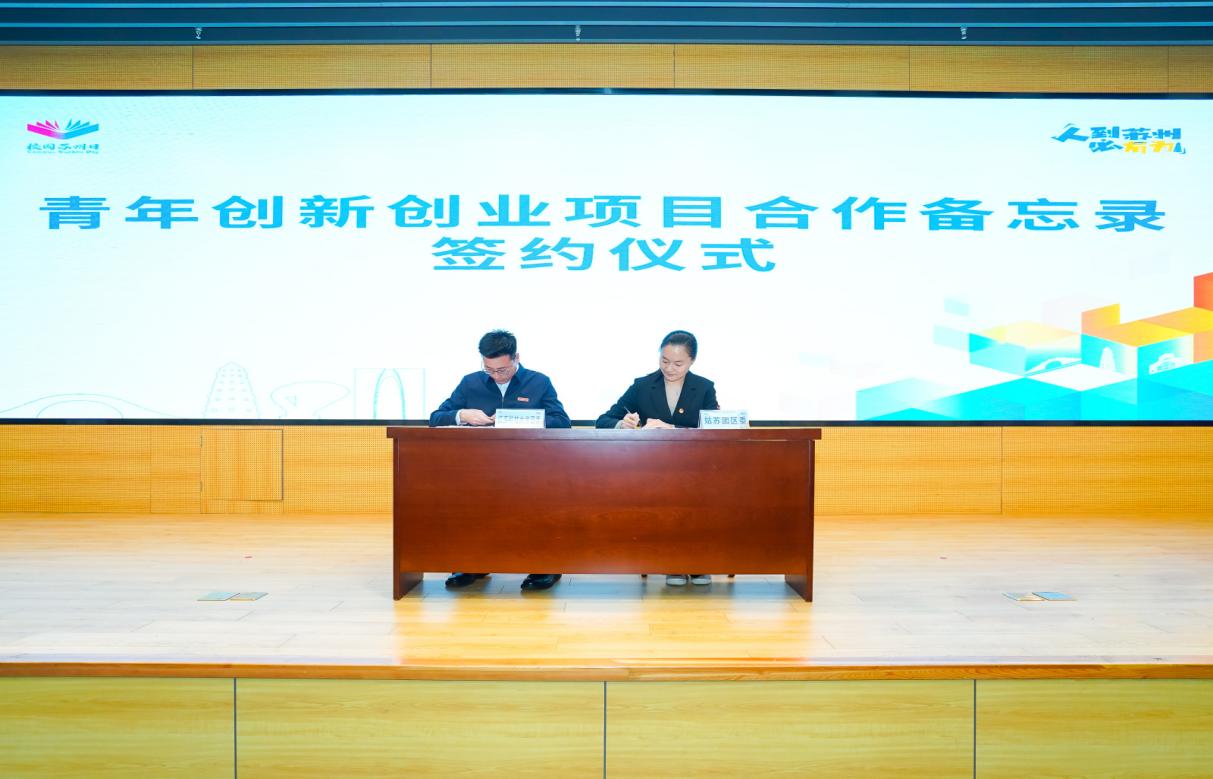 江苏科技大学校团委副书记张冬冬、共青团姑苏区委副书记饶珠共同签约青年创新创业项目合作备忘录