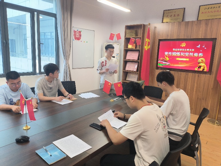 自动化学院专业型研究生党支部开展了主题为"党性锻炼与党性修养"的活动。活动中,预备党员共同学习了《敬礼!我的党—100集青少年党史课》中的《党性修养》学习影片,并就"如何正确看待网络舆论"、"如何坚持底线思维"等热点话题展开了充分的研讨,表达了各自的理解与观点。