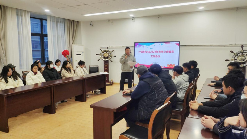 2024年3月19日下午,计算机学院“同心圆”心理协会在计算机学院328开展春季心理委员新学期工作会议,会议由学院心理辅导员刘宝达主持,全院全体心理委员共40余人参加会议。