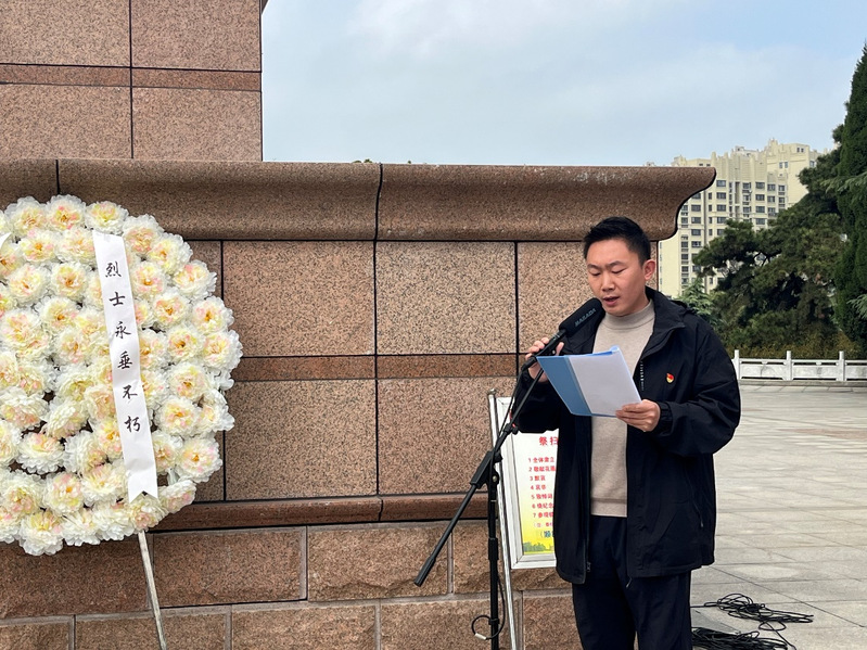 在默哀三分钟后,辅导员、班主任刘宝达致悼词,深切缅怀革命先烈们的丰功伟绩,表达后辈们的无限哀思和景仰之情,告慰先烈们的在天之灵,他们的精神将与青山共存,与日月争辉;英雄的壮举载入史册,战争的年代造就了英雄们的坚强与勇敢,和平美好的环境为我们提供了学知识、长才能、成栋梁的机会,我们有信心,因为我们有榜样!我们珍惜幸福生活来之不易,我们号召青年一代主动扛起历史责任和历史使命,为祖国的建设作出新的贡献。