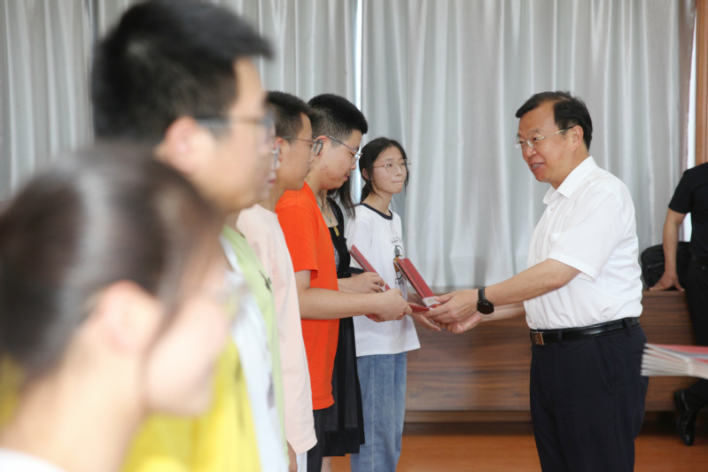 7月24日下午,江苏科技大学党委书记周南平带队赴江苏省丹阳高级中学为已录取的17位新生颁发录取通知书,江苏科技大学党委常委、副校长胡爱祥、江苏科技大学学生处处长朱金、赢博官方网站,赢博yingbo(中国)党委书记高尚、副书记吴健康等共同参加。江苏省丹阳高级中学党委书记、校长潘国良热情接待,江苏省丹阳高级中学副校长柳响成、年级部主任夏俊、年级部副主任牛有明出席颁发仪式,会议由江苏省丹阳高级中学副校长柳响成主持。