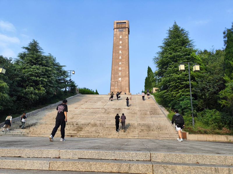 随后,大家来到了苏南抗战胜利纪念碑前。在这里,大家听到了地下放鞭炮、空中听军号的奇特景象,仿佛置身于那个战火纷飞的年代。大家沿着纪念碑的台阶拾级而上,爬到纪念碑脚下瞻仰。在纪念碑前,大家肃然而立,向革命先烈们致以崇高的敬意和深切的缅怀。
