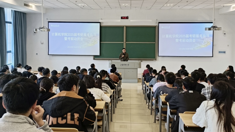 为全面助力2025 届考研学生更全面、更深入地洞悉考研报名政策及注意事项,进一步引领该届学生清晰认知当下考研形势,明确个人考研目标,科学合理选定院校,激发考研自信心与积极性,计算机学院于10 月 10 日下午在文理大楼 104召开 2025 届考研报考指导暨考前动员大会。学院全体院领导、系主任、专业负责人、青年博士教师、毕业班班主任、辅导员及2025届考研学子积极参与其中,会议由学院党委副书记吴健康主持。