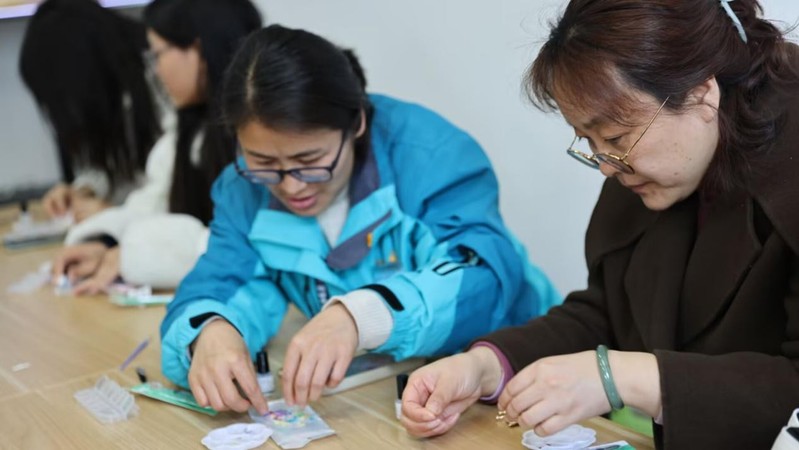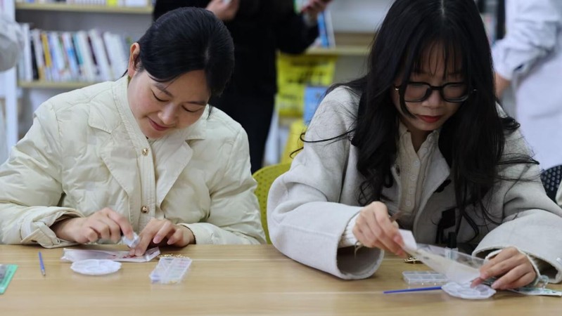 活动现场氛围温馨,大家全身心投入到非遗 —— 螺钿胸针的制作环节,认真聆听非遗传承人的讲解,一起拿起工具,精心制作。师生们围坐在一起,一边探讨制作技巧,一边分享生活中的趣事,在实践中深切感受传统文化的深厚魅力,欢声笑语回荡在整个活动场地。