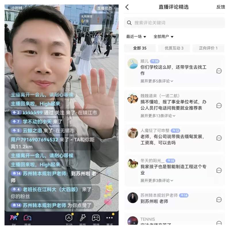直播互动,云端助力就业IT行业今年的人才需求有哪些新趋势?跨专业求职应该如何准备?直播间里,学生家长的问题不断刷屏。就业负责老师结合现场情况为线上学生及家长分析行业动态:今年IT企业更看重实践能力,建议大家突出项目经验......,通过此类形式,线上线下的学生都能获取一手求职信息。据统计,本次短时直播累计观看人数200人次,互动留言数条,吸引了不少学生家长观众。效果显著。