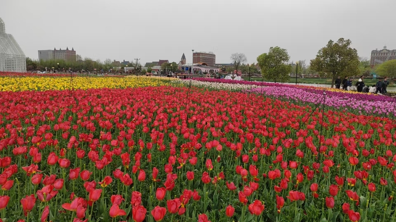 教职工漫步于郁金香花田,参与“花梦奇旅大巡游”“异域风情综艺秀”等特色活动,体验滚铁环、爆米花喜乐等互动项目,感受春日的生机与活力。