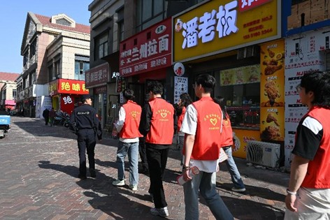 图八 支部成员在警务人员的带领下开展执勤巡逻