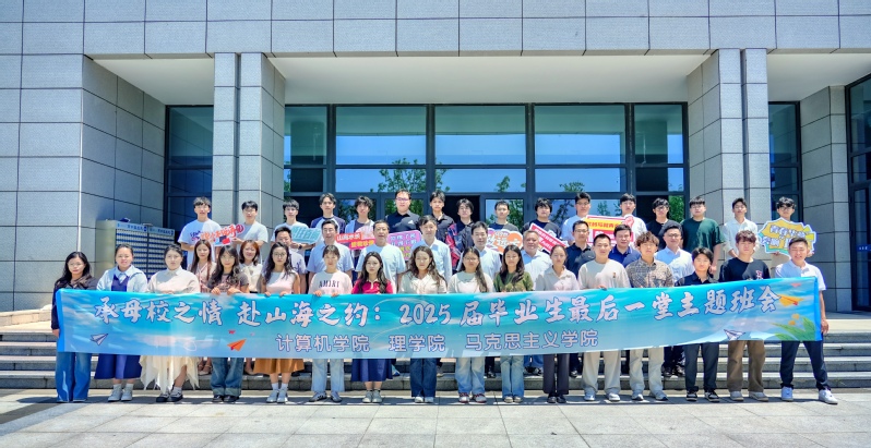 616日 ,计算机学院、理学院、马克思主义学院联合举办了“承母校之情 赴山海之约——2025届毕业生最后一堂主题班会”。校党委书记杨建新亲临现场,与师生共话青春、共寄未来。三个学院领导、辅导员及2025届毕业生代表40余人出席本次活动,活动由计算机学院党委书记高尚主持。